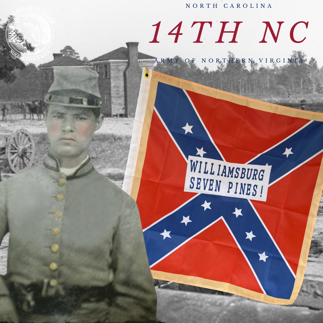 These are modern all-weather nylon flags for your house or garden based on the original flag carved by the 14th North Carolina.