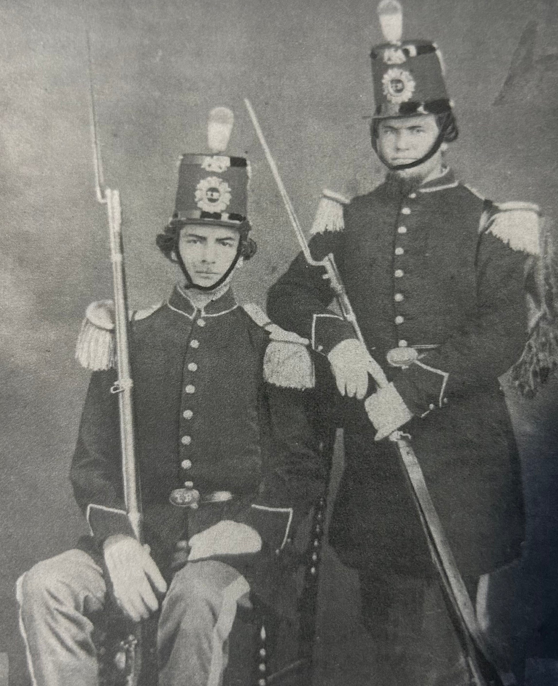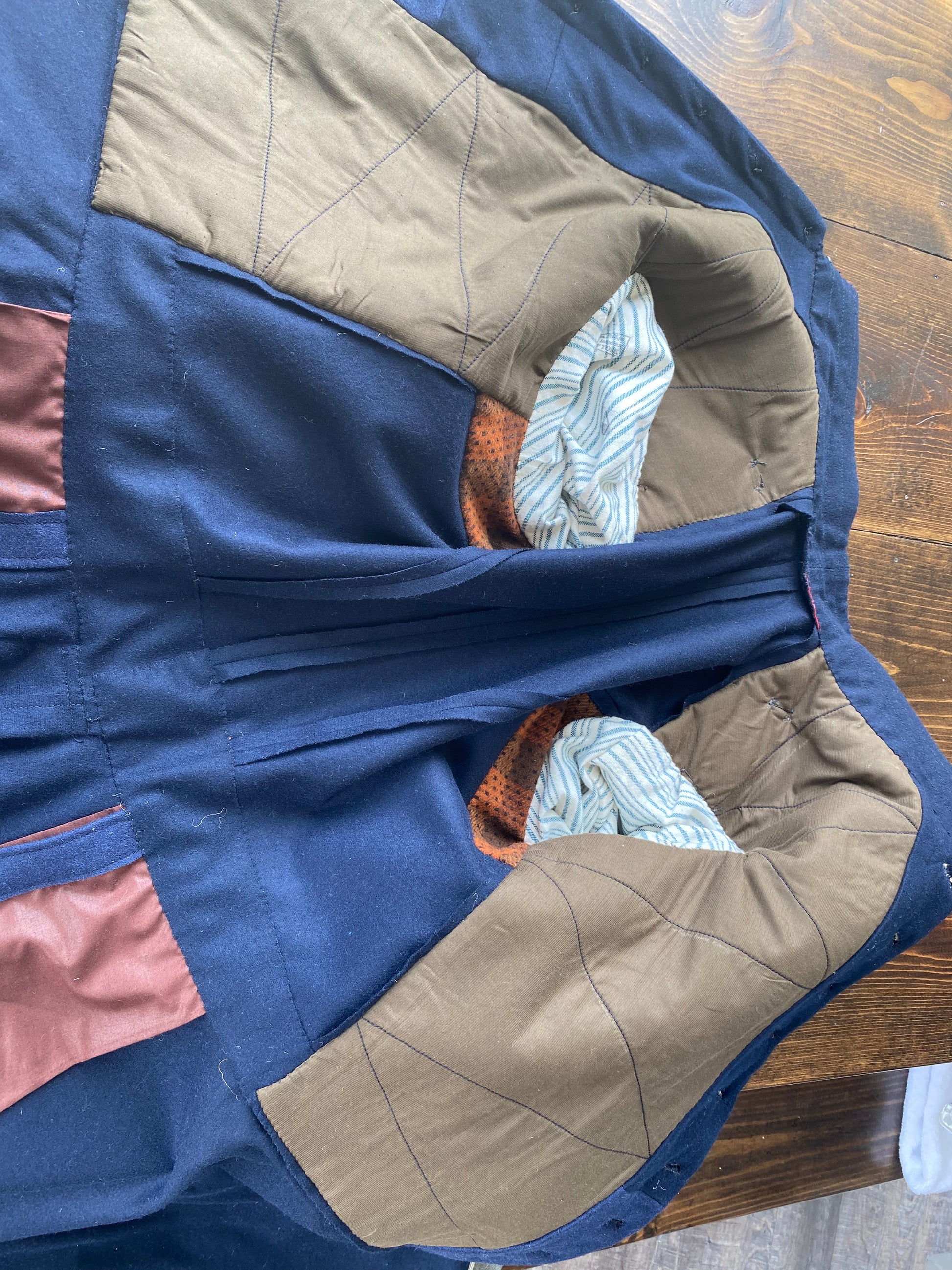 Uniform was to consist of a dark blue frock (dress coat) and cadet gray trousers. The overall cut and trim is nearly identical to that of the M1858 Dress Coat, with some variations seen amongst the known photos. The coats were closed with AVC buttons per the regulations. While no surviving examples these are constructed per known pre-war 1858 Dress Coats and have the skeleton lining commonly found in pre-war frock coats.