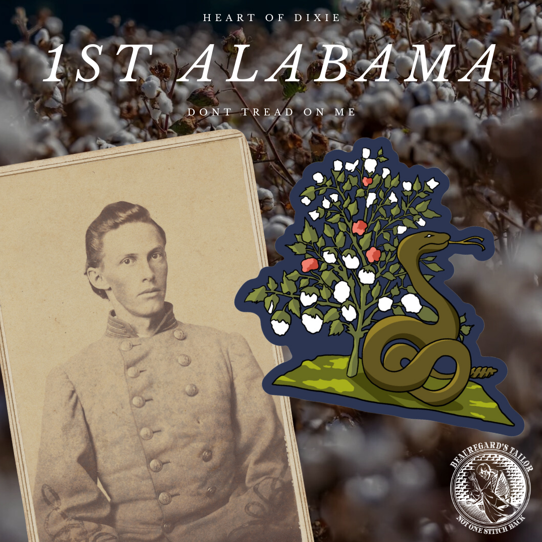 Design based on the flag of the 1st Alabama Infantry. The design does not include the text portion of the flag, that option is available here.