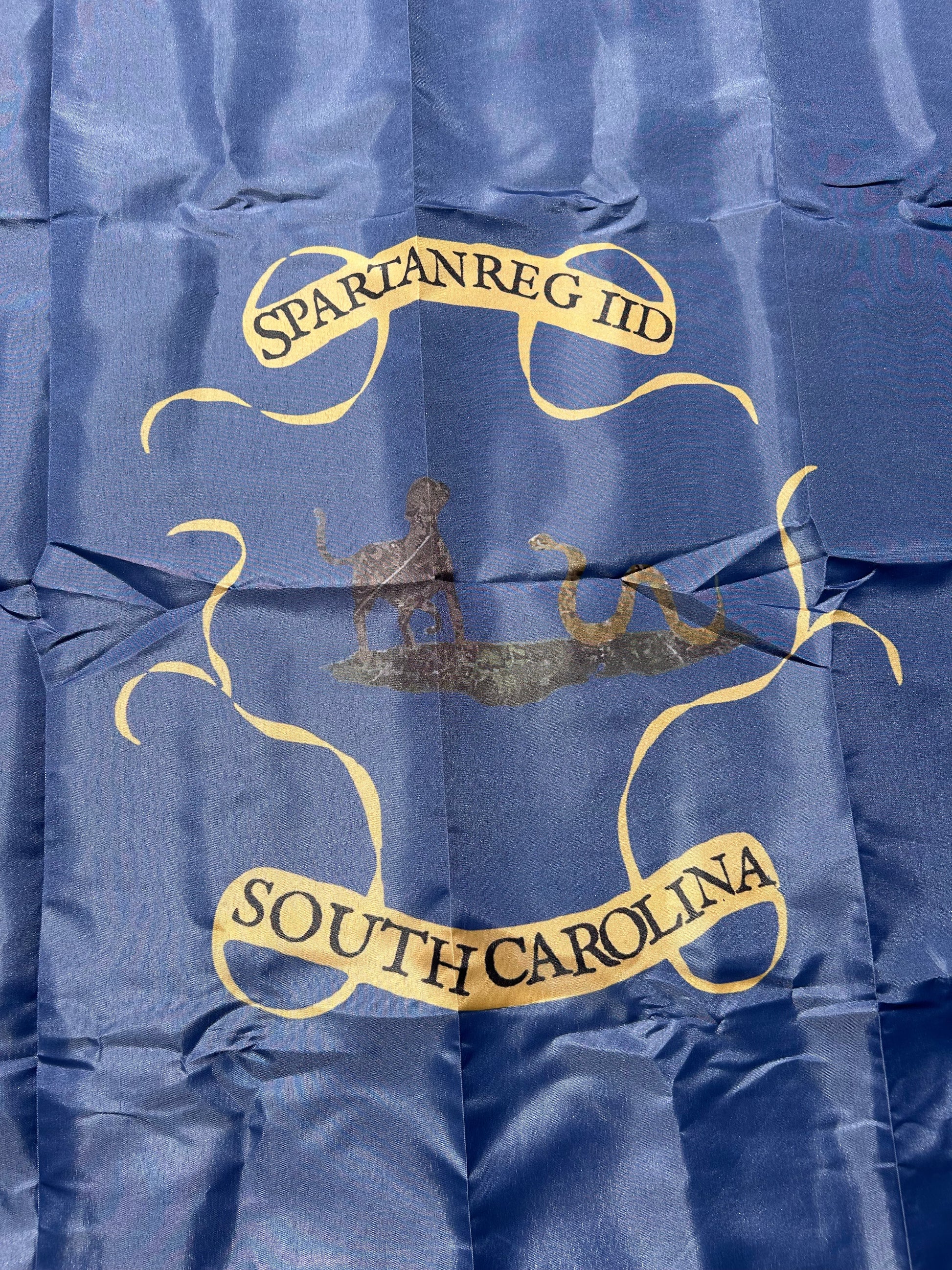 Original flag and historical background can be found here. The Spartan Regiment would participate in various Campaigns in the South Carolina Upstate, including the Snow Campaign and the Battle of Cowpens. The County and later City of Spartanburg would be named in their honor.