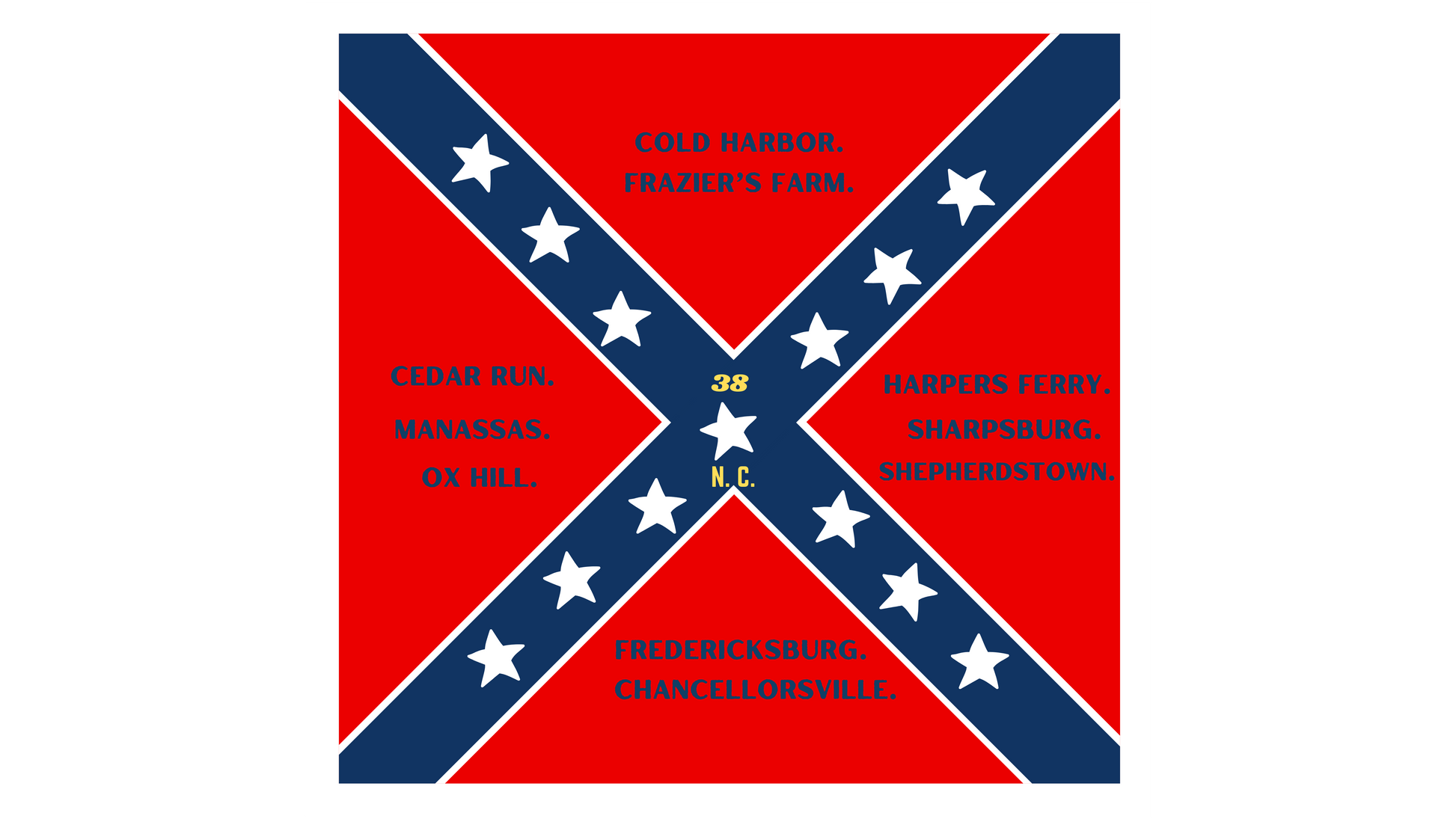 These are modern all-weather nylon flags for your house or garden based on the original flag carved by the 38th North Carolina.