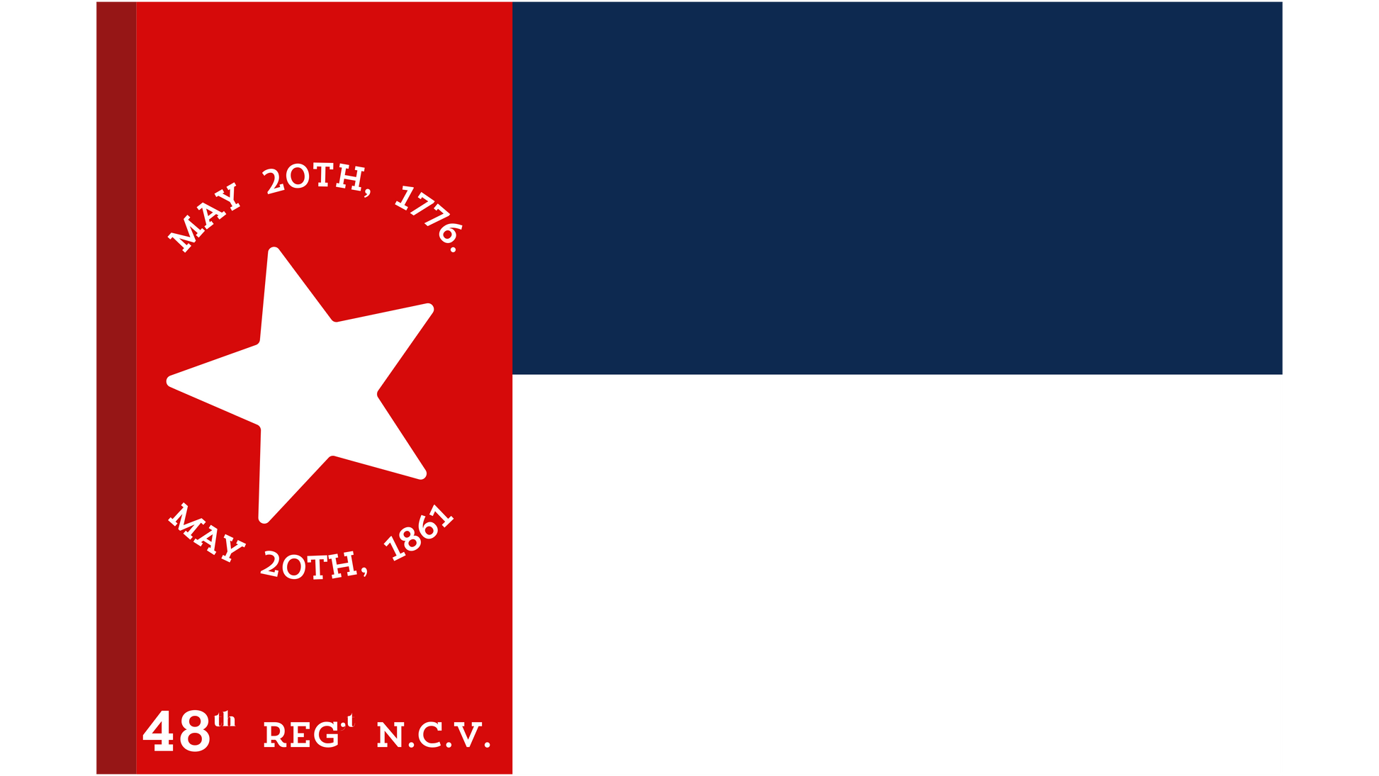 North Carolina State Flag established in the Constitutional Convention of 1861. The flag denotes the original dates of the state declaring independence in 1775 and the secession date of 1861. Design is based on the flag carried by the 48h North Carolina.