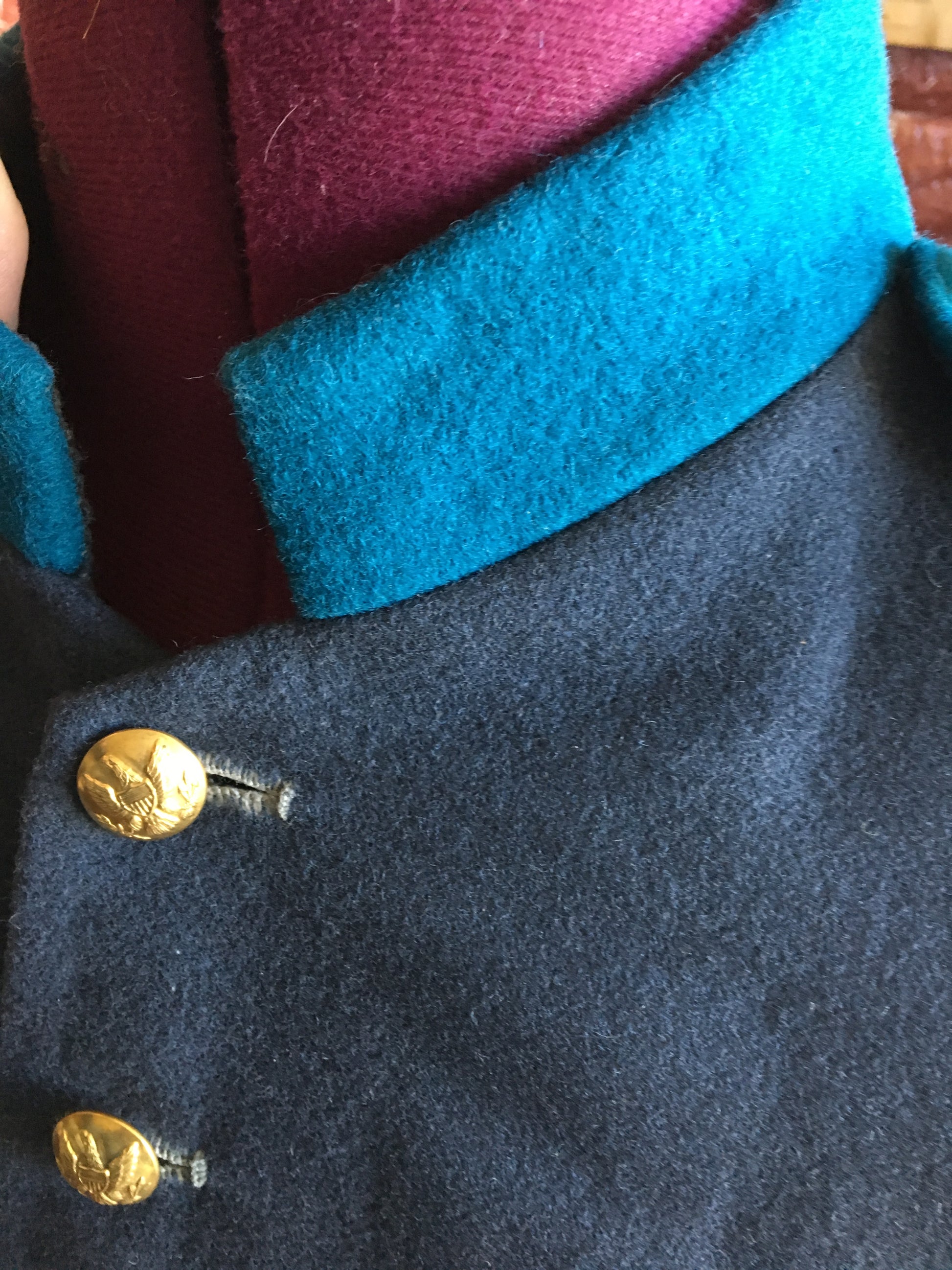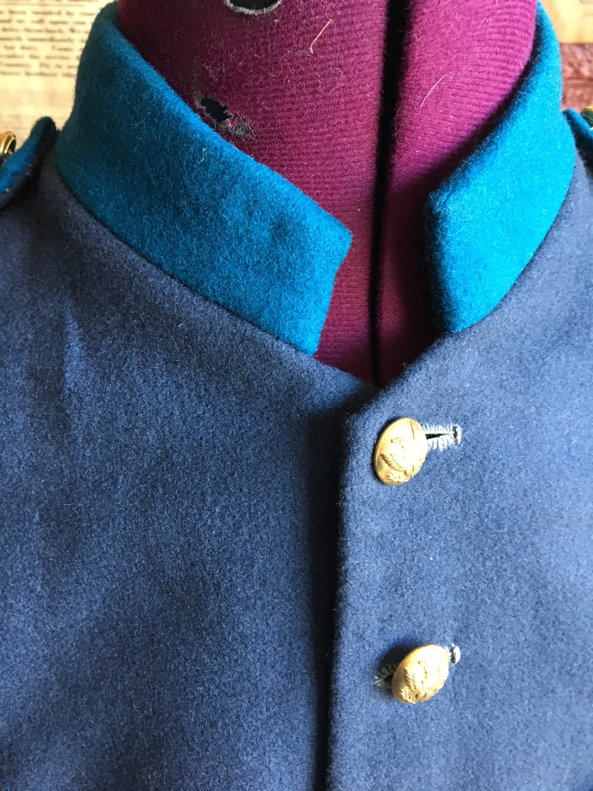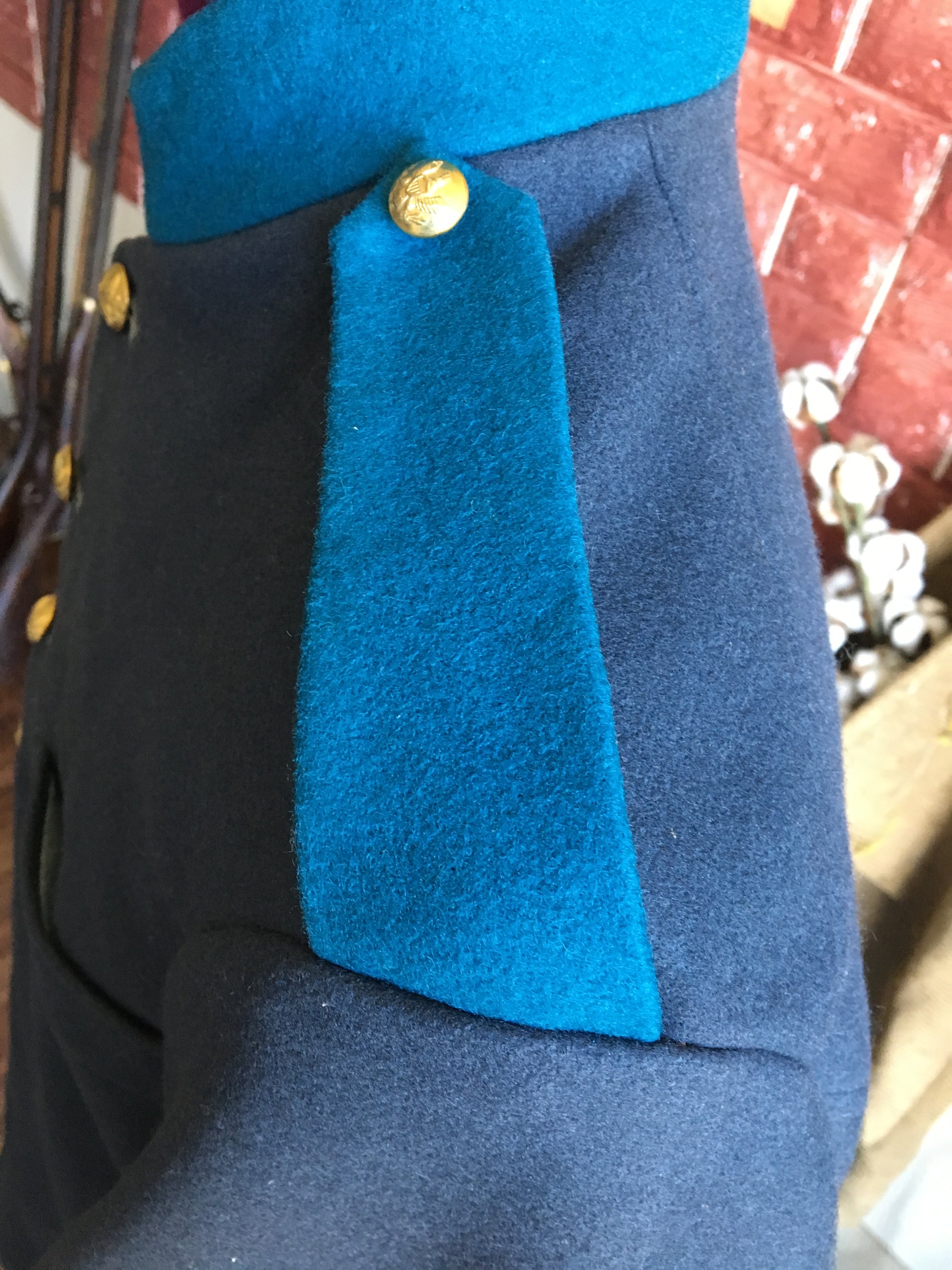 An excellent example of a non-descript “Commutation” style jacket for usage amongst forces receiving goods from home throughout the war. The jacket comes trimmed on the collar and epaulets, two outside chest pockets, and can be made from grey jean cloth or grey broadcloth.