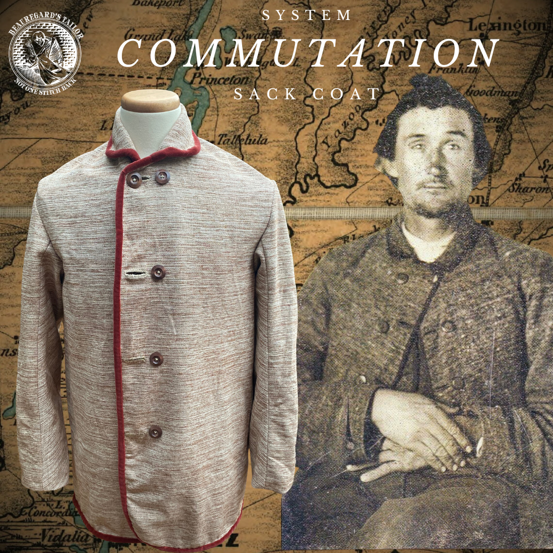 Prior to the implementation of the Confederate Depot system, the Commutation system was in place to allow the newly enlisted soldiers to supply their own uniforms for compensation by the Confederate government. The system was relatively short-lived once the depots across the South were put into full production. Living history community generally refers to any garment that was not formally produced by a depot as "Commutation". This is a miss-use of the term, whereas tens-of-thousands of garments were provided privately to individuals outside of the depot system through the end of the war. Common garments such as frock coats are essentially only privately acquired by the individual soldiers and are seen all the way into the trenches of Petersburg in 1865. . . years after the official Commutation System had been abolished.
