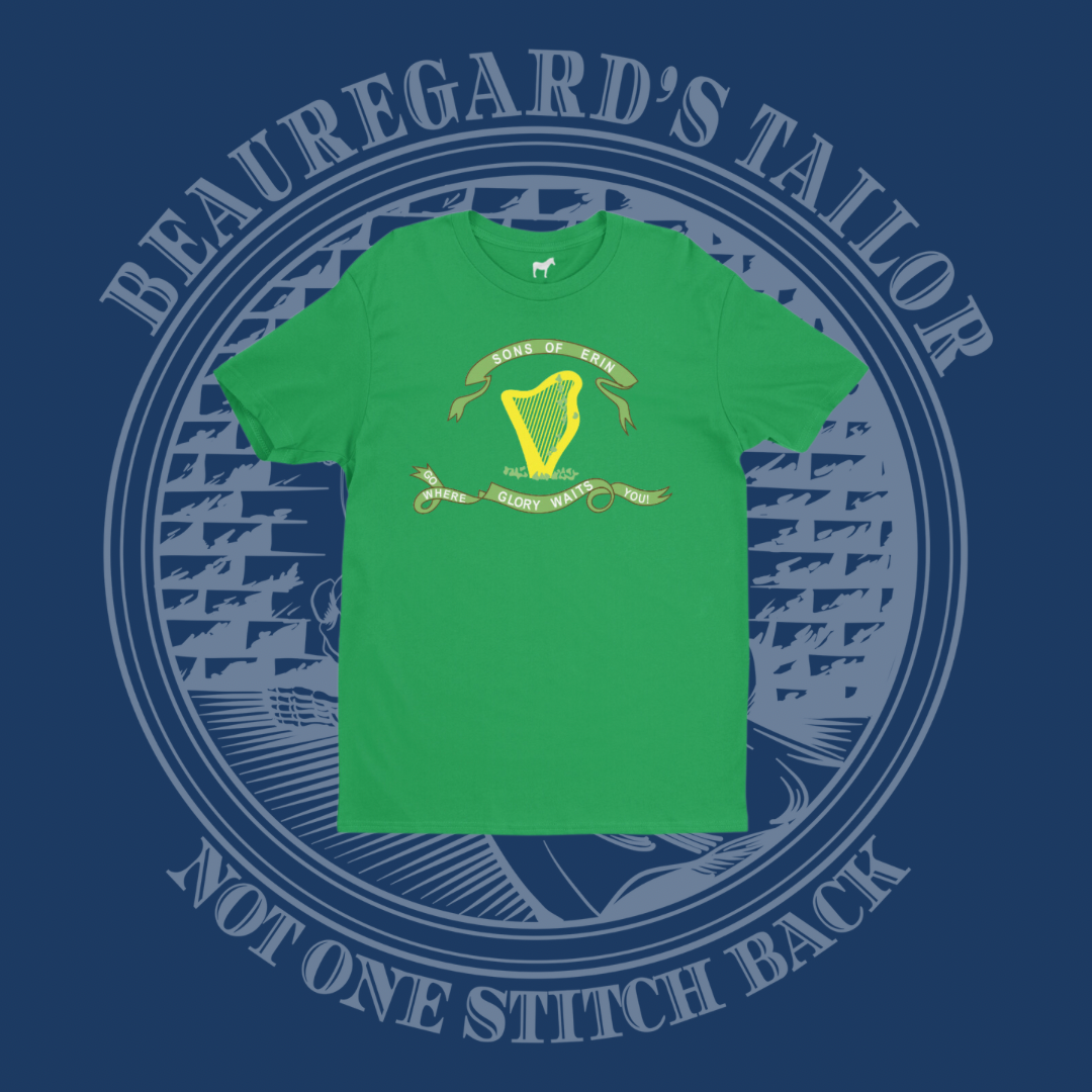 10th Tennessee was raised at Nashville, Tennessee, in April 1861. Under the command of Colonel Randall McGavock, an Irish-American, the regiment saw action in the Western theatre, fighting in Mississippi and Tennessee. At the Battle of Raymond, Mississippi, in May 1863, 52 members of the regiment were killed, including Colonel McGavock. The artwork represents the colors carried by the regiment.