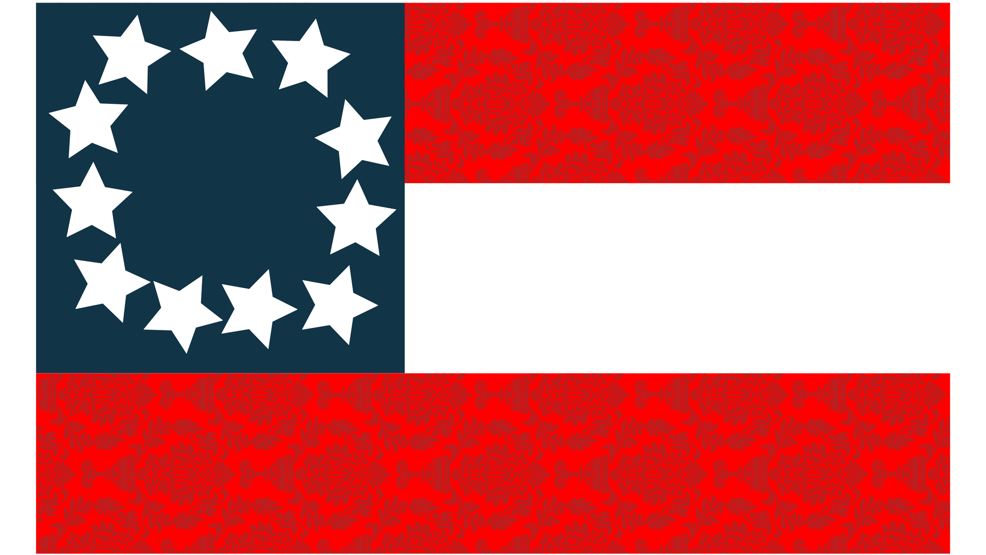 1st National Flag captured at Fort Walker. The flag's pattern is common, but like several other surviving Southern flags, the silk used was Damask, showing a distinct pattern woven into the red stripes.