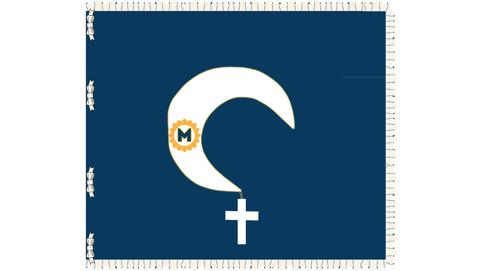 Design based on the flag utilized by the headquarters of famed Missouri General John. S. Marmaduke. The imagery is highly symbolic, with the crescent referencing back to well known Southern Fort Moultrie (South Carolina Flag) - symbolizing liberty with the cross (Christianity) anchoring it. Creating a symbol to represent the concept of Christian Liberty.