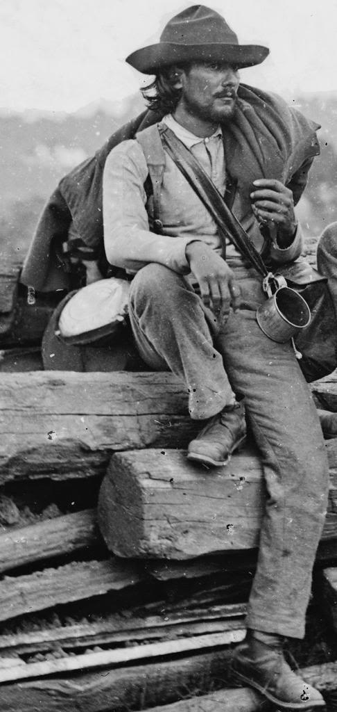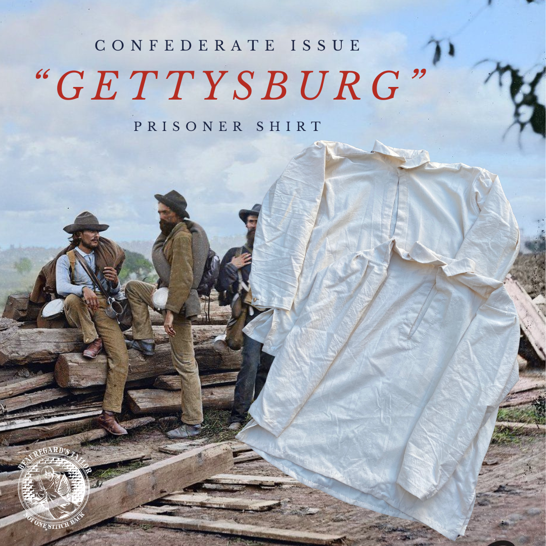 Based the famed image of Confederates captured at Gettysburg, the shirt represents a commonly seen style of mass production garments issued to Southern forces. Similar to ones linked to the Army of Tennessee and even the Federal issue shirts, the design is the essence of practicality and efficiency in production.