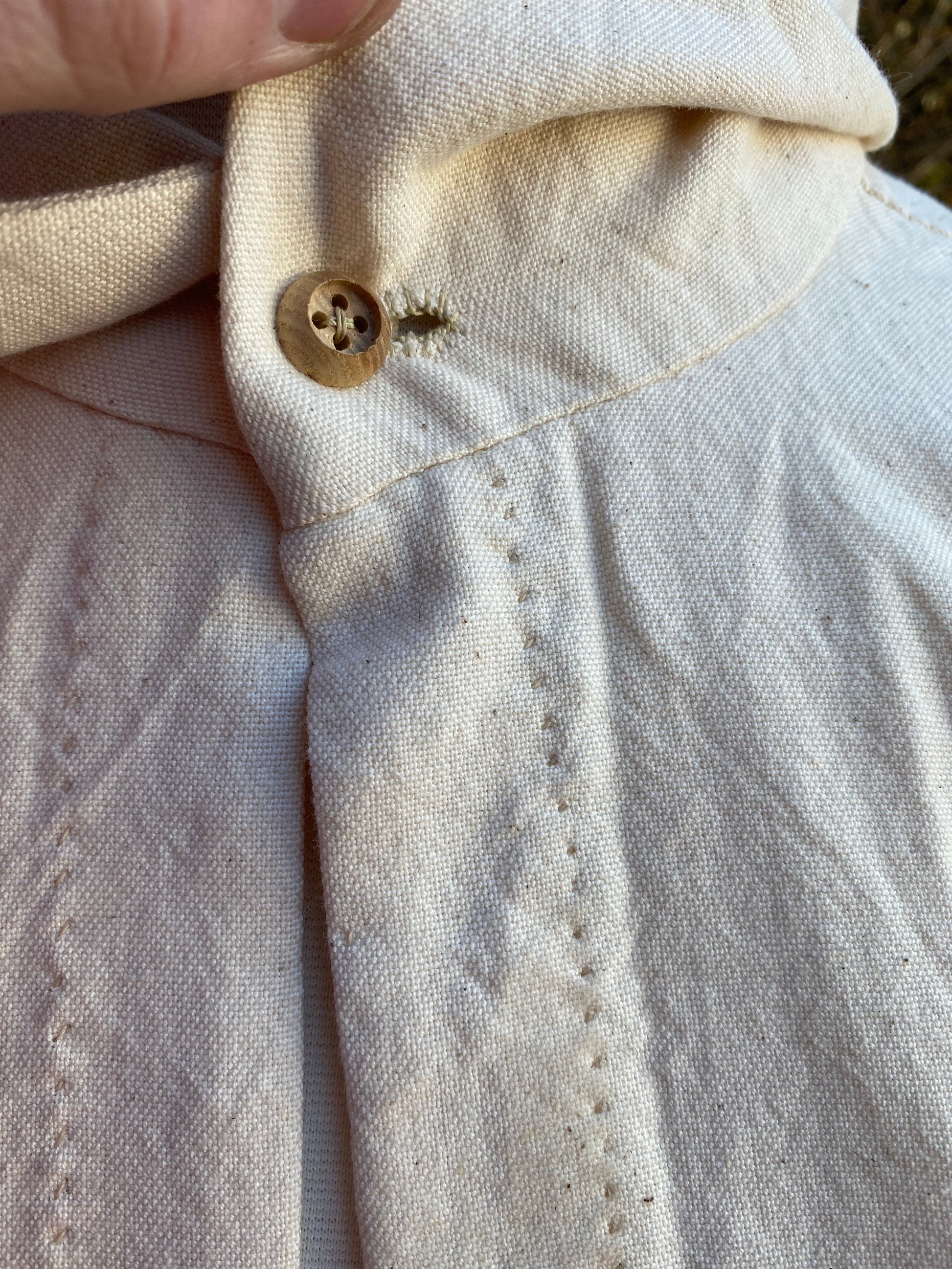 The shirt is made from cotton with a vent placket and single piece sleeves. The shirt does not have any pockets, gussets, or cuffs. It is historically unclear if this was a product of Richmond Clothing Bureau or another production facility. However, it is solidly linked to the Army of Northern Virginia in the summer of 1863.