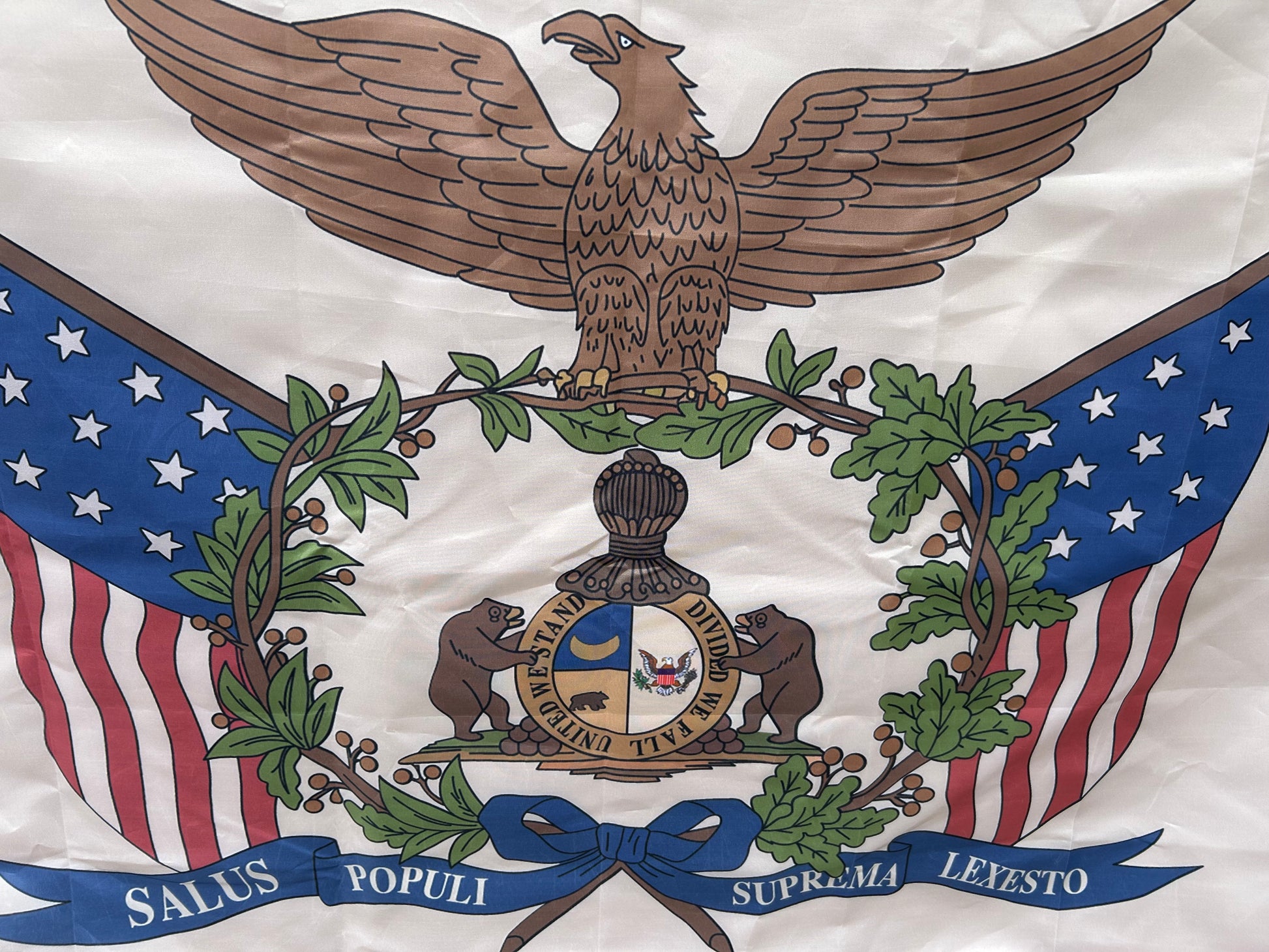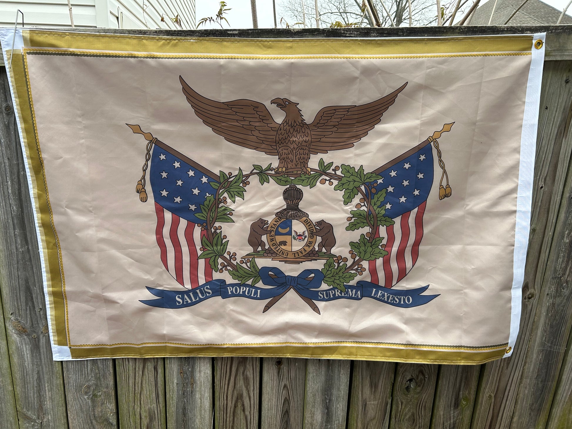 These are modern all-weather nylon flags for your house or garden based on the original flag carried by the Missouri Guard.