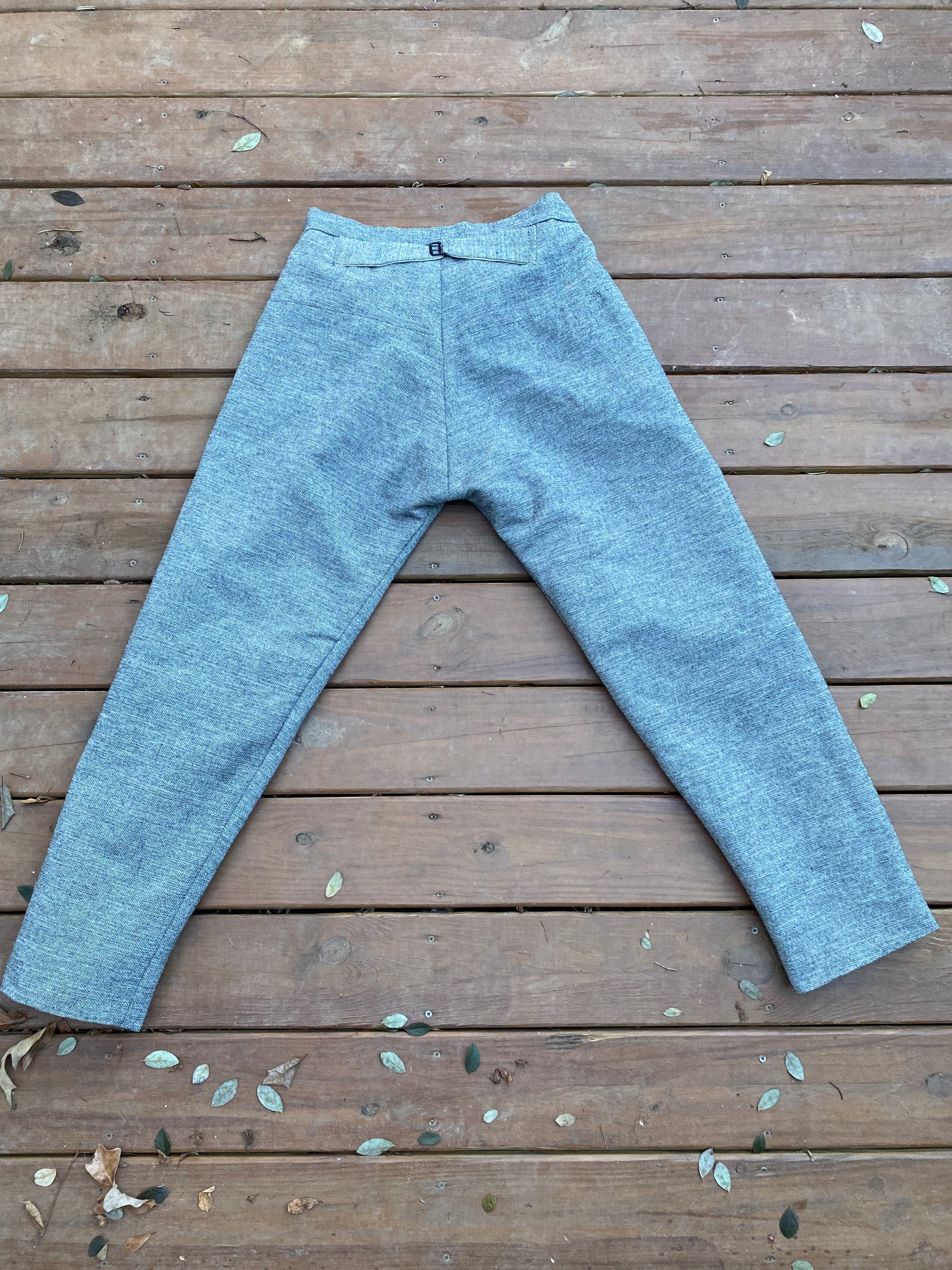 The trouser sizes noted represent the natural waist measurement of the individual. Please beware these are not modern sizes and failure to utilize true natural waist measurements will result in ill fitting trousers. The tailoring fit and shapes are accurate to the historic garment, which are often different than equivalent modern clothing.
