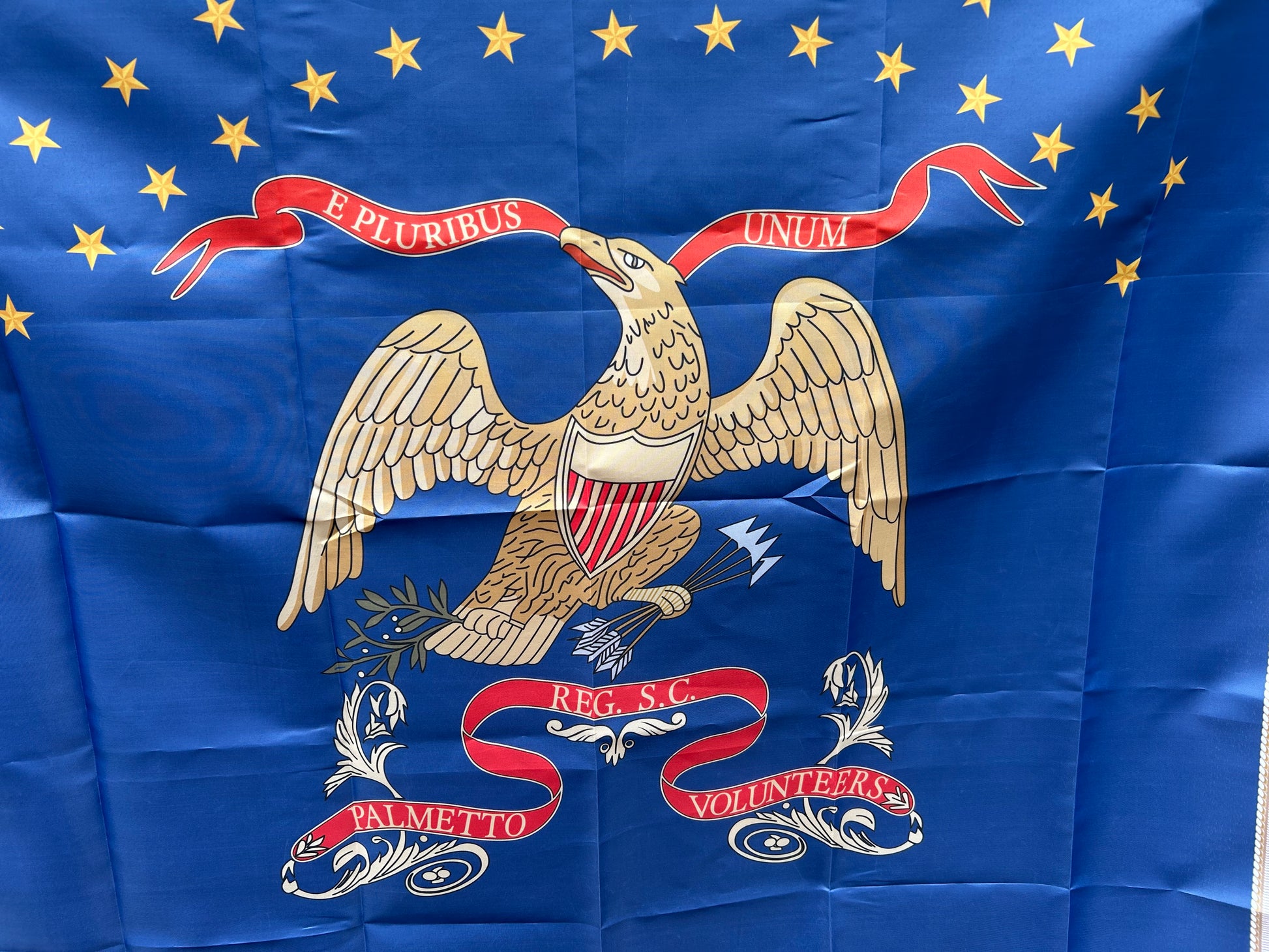 Palmetto Regiment Flag After the capture of Mexico City, Maj. Gen. William O. Butler presented the Palmetto Regiment with this flag to replace their regimental flag which had been shot nearly to pieces in combat. It survived the Civil War and accompanied the 2nd South Carolina Volunteer Infantry, the old Palmetto Regiment, to Cuba during the Spanish-American War, where it became the only American flag to fly victorious over the capitals of two foreign countries. The State of South Carolina received the flag in 1900. This flag appears on the right side of the Scroll of Honor. The first Palmetto Regiment flag, the first flag raised on the citadel of Chapultepec, is depicted on the left. It disappeared during the War Between the States. Photos and flag descriptions courtesy of the South Carolina Confederate Relic Room and Military Museum.