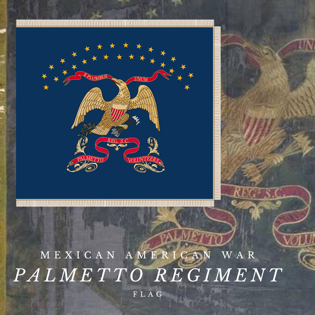 Palmetto Regiment Flag After the capture of Mexico City, Maj. Gen. William O. Butler presented the Palmetto Regiment with this flag to replace their regimental flag which had been shot nearly to pieces in combat. It survived the Civil War and accompanied the 2nd South Carolina Volunteer Infantry, the old Palmetto Regiment, to Cuba during the Spanish-American War, where it became the only American flag to fly victorious over the capitals of two foreign countries. The State of South Carolina received the flag in 1900. This flag appears on the right side of the Scroll of Honor. The first Palmetto Regiment flag, the first flag raised on the citadel of Chapultepec, is depicted on the left. It disappeared during the War Between the States. Photos and flag descriptions courtesy of the South Carolina Confederate Relic Room.