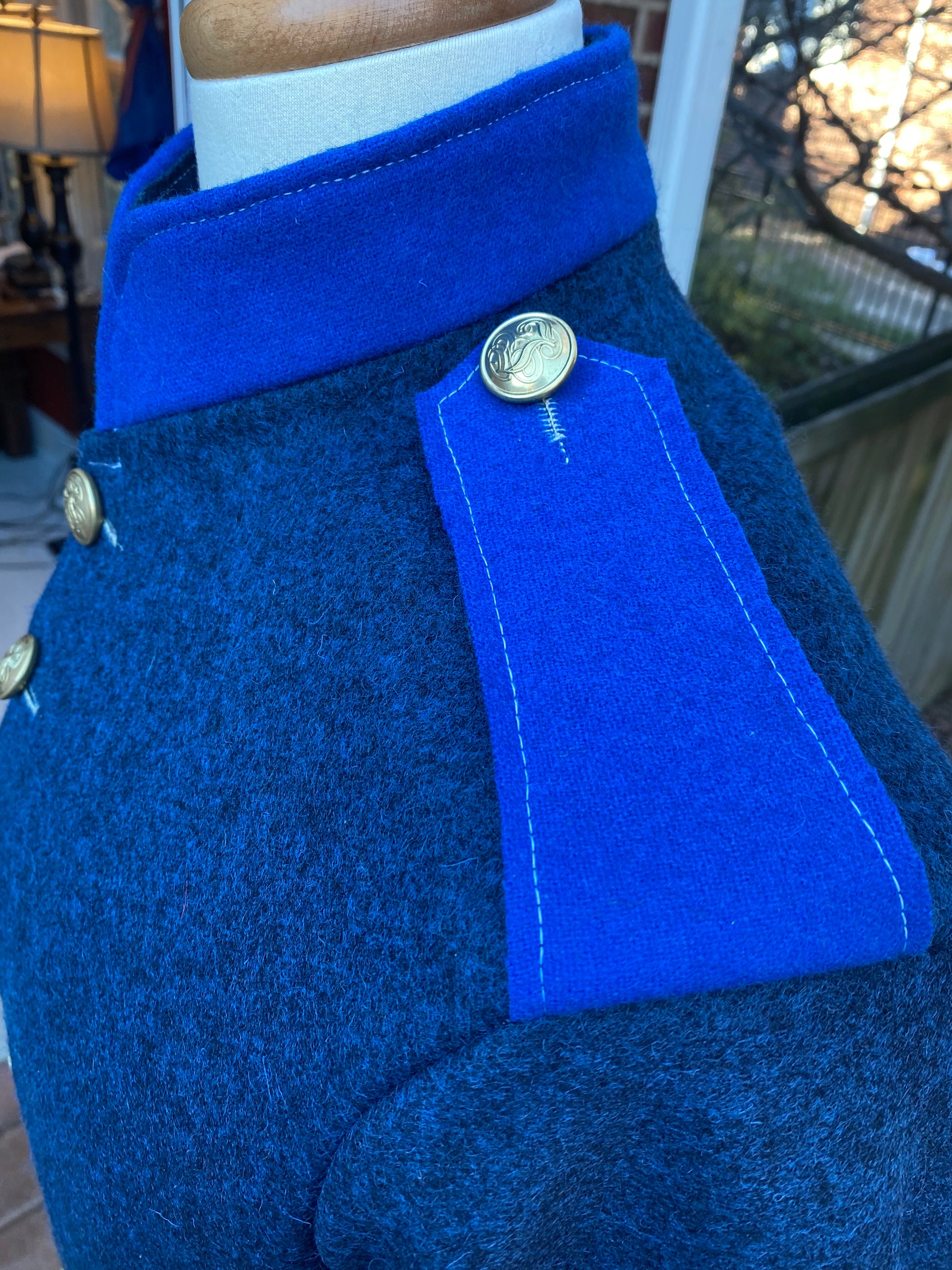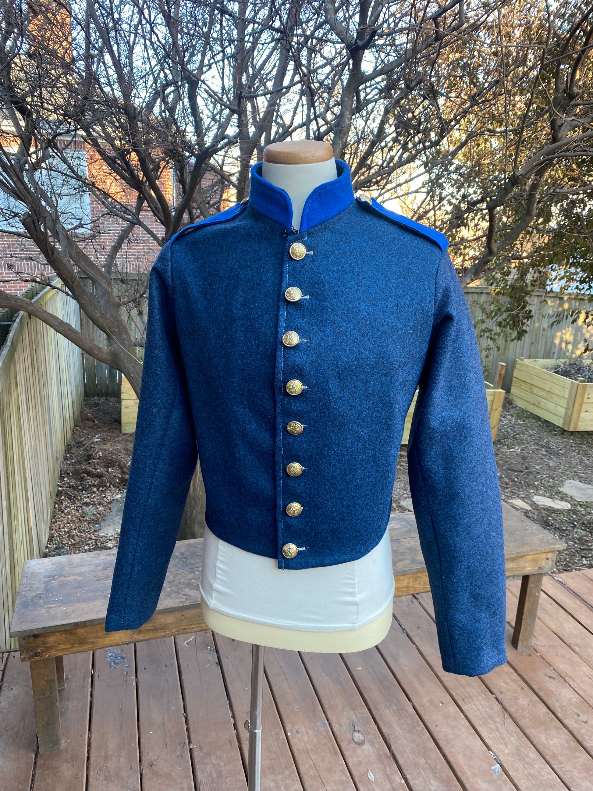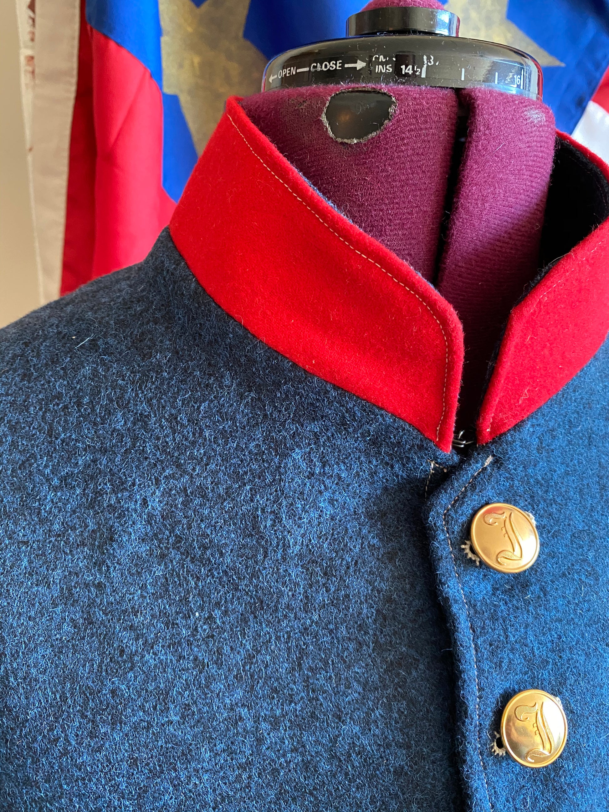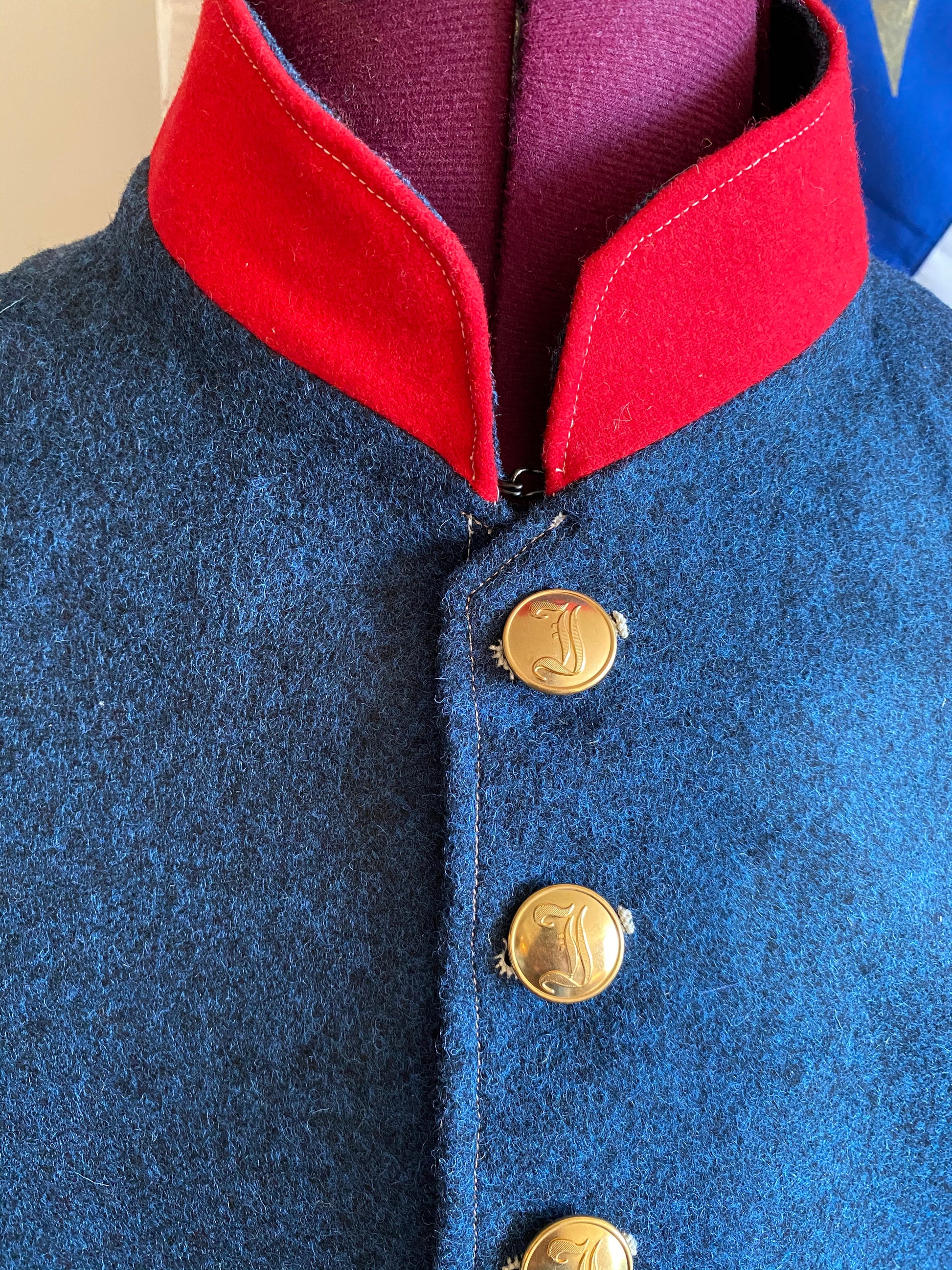 As part of the wide range of goods imported into the Southern Confederacy, finished garments made their way to the armies in the last year of the war. These jackets were primarily produced by the Peter Tait company and ranged in various patterns and trim styles. The first batches of the Tait Jackets would reach the Army of Northern Virginia in late 1864 and early 1865, however, these garments would arrive in the various coastal departments and Trans-Mississippi Theater early in 1864.