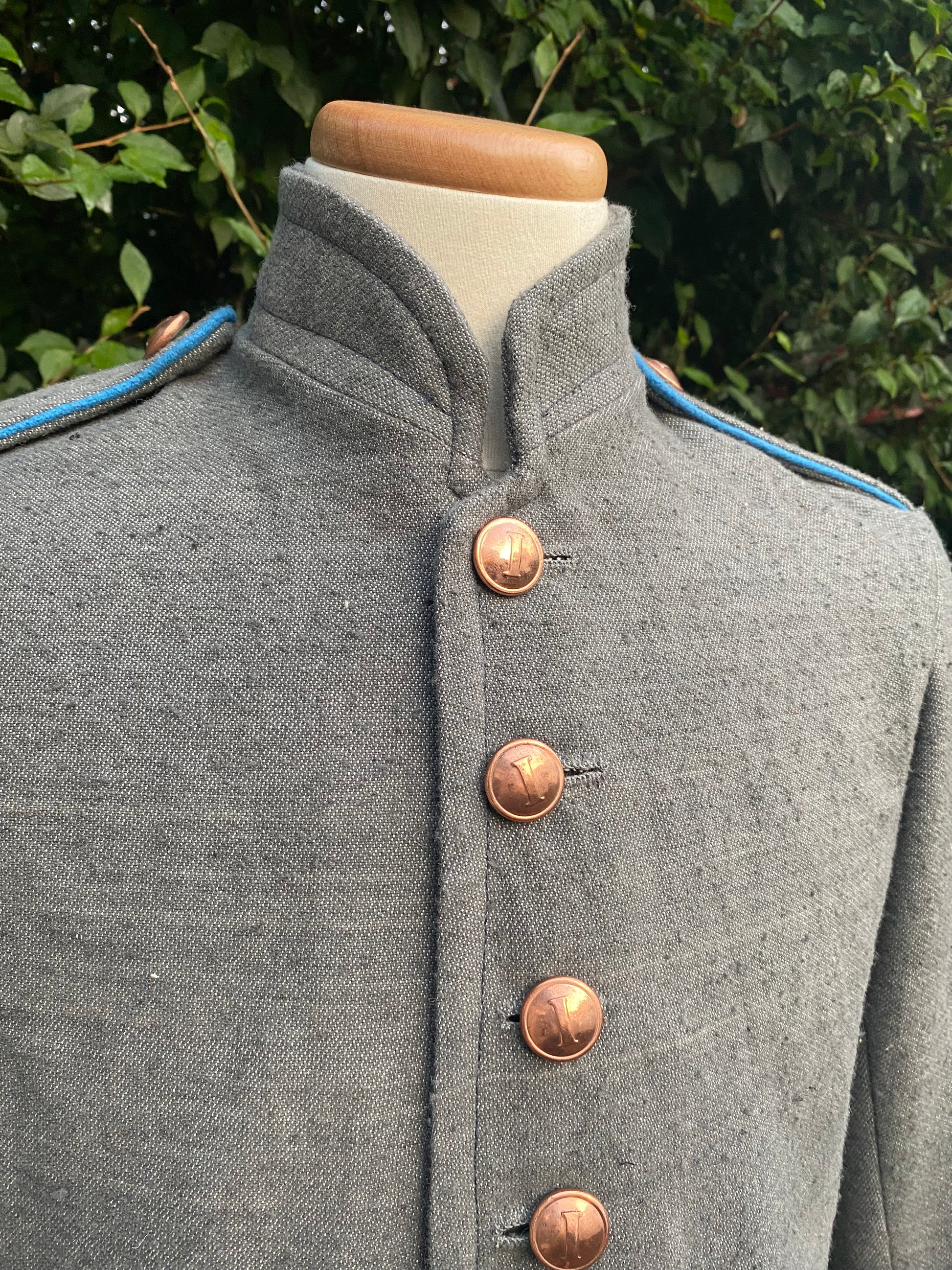 While periodically photographed, there is only one known example of a partially trimmed Richmond Clothing Bureau Jacket (Royall). Two examples are offered, one based on the Royall Jacket and a second based on the machine sewn examples issued at the same period of production.