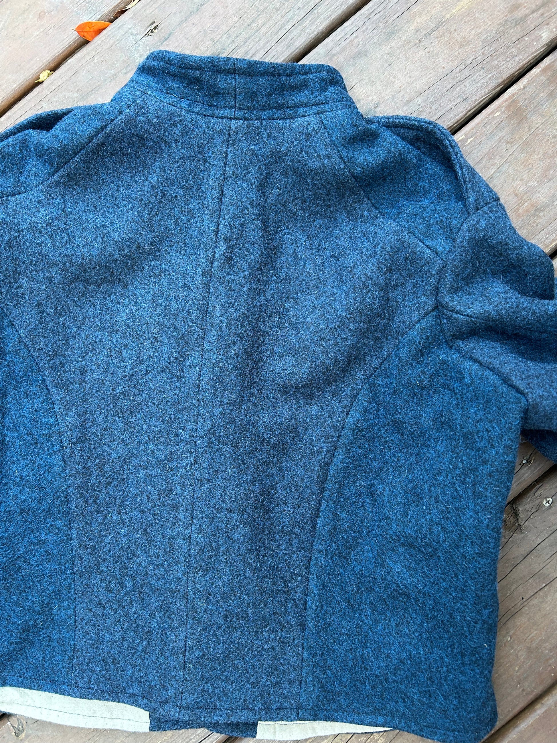 The jacket is made from the same EAC I use for all products. However, the jacket is made from two separate bolts of the same cloth, which results is shade deviation between the sleeves/body/back (see photos). While no historical accuracy issue, please note that there is a shade difference.