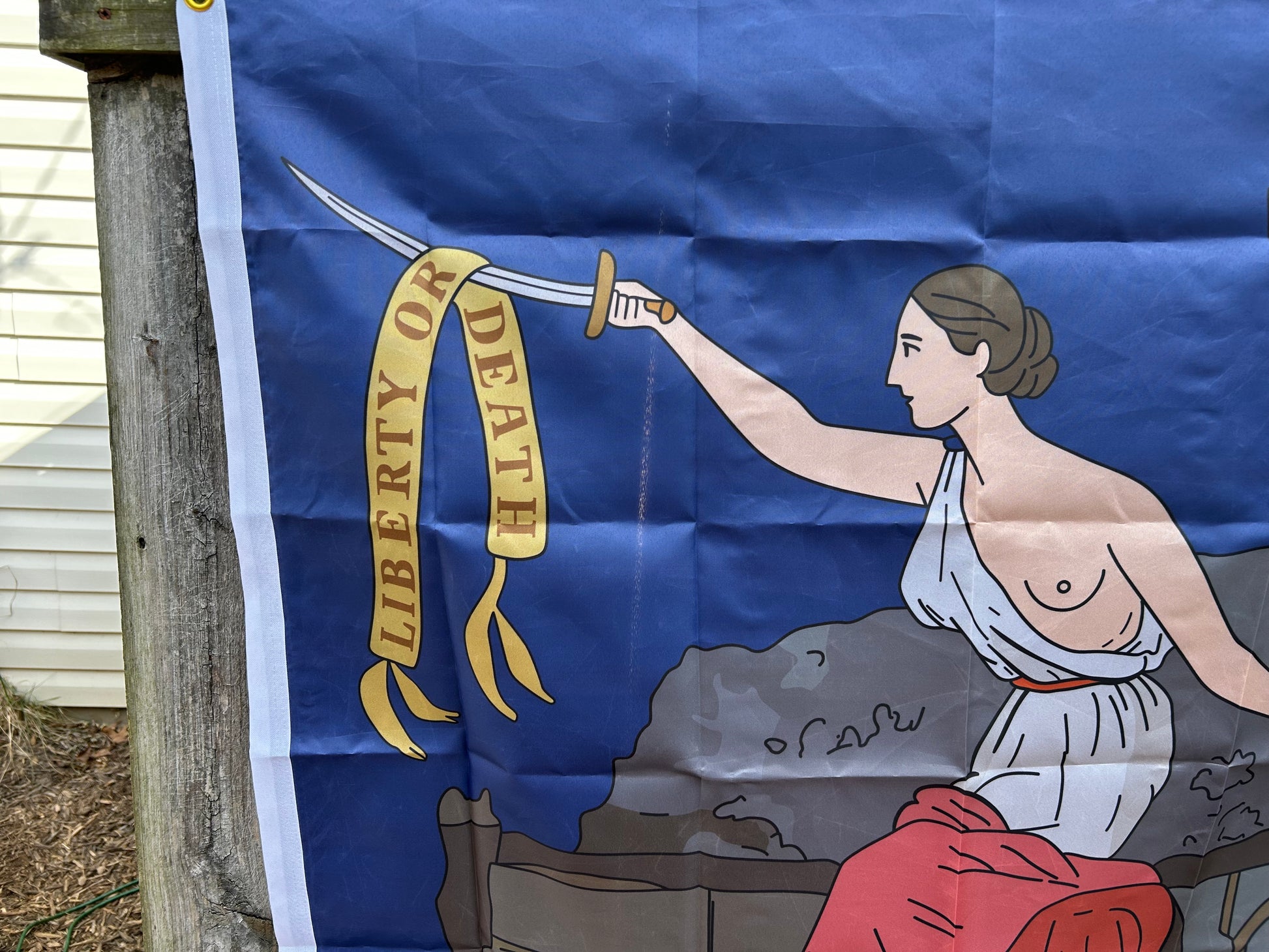 These are modern all-weather nylon flags for your house or garden based on the original flag carried by the 1st Virginia Militia - Mexican American War Flag.