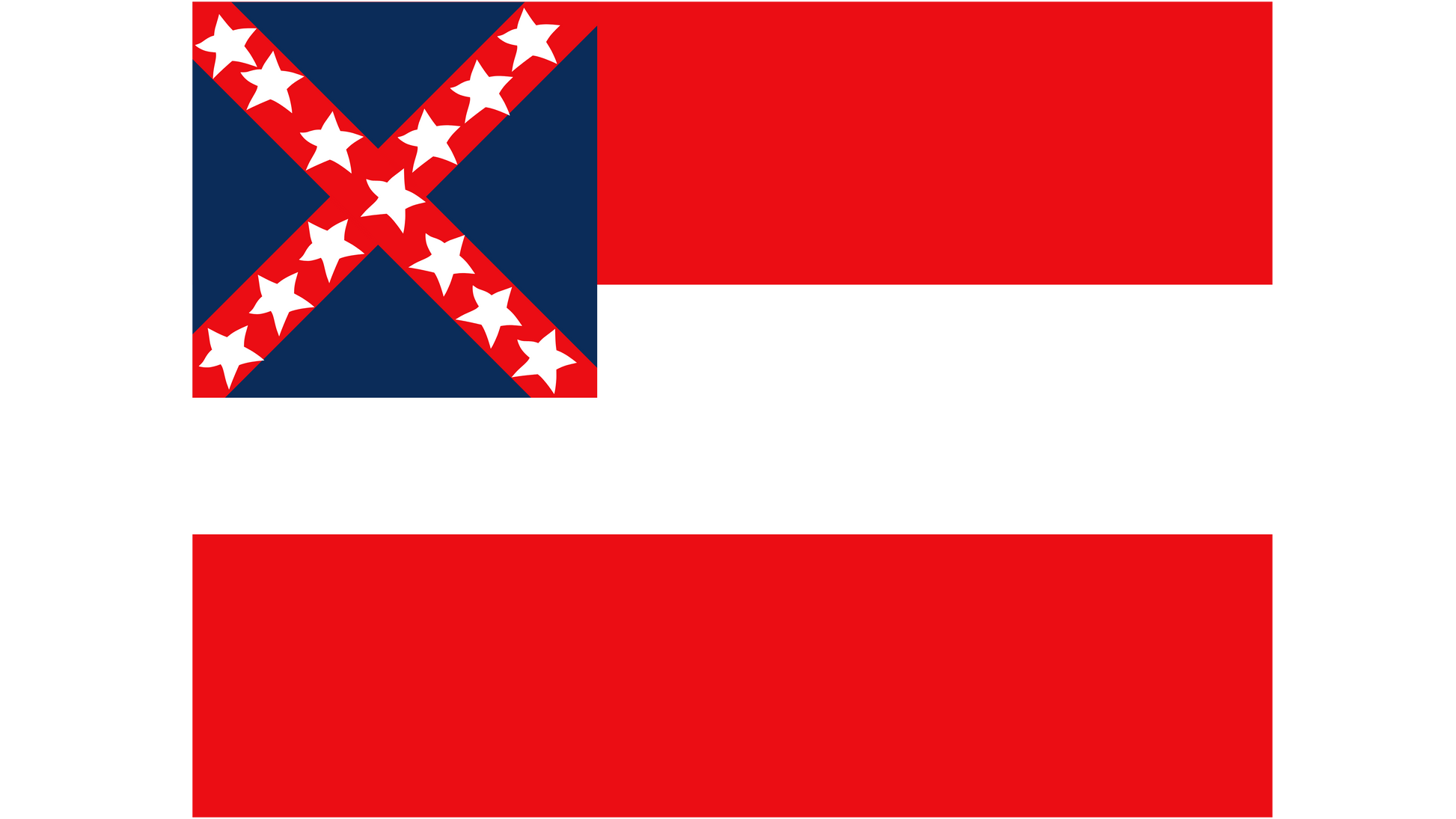 Flag is based on a surviving example that appears to combine the canton color combination commonly seen in the Trans-Mississippi (but also occasionally in Army of North Virginia and North Carolina coastal garrisons), with the First National stripes. This configuration is seen on a few other examples, of combing the two flag patterns.