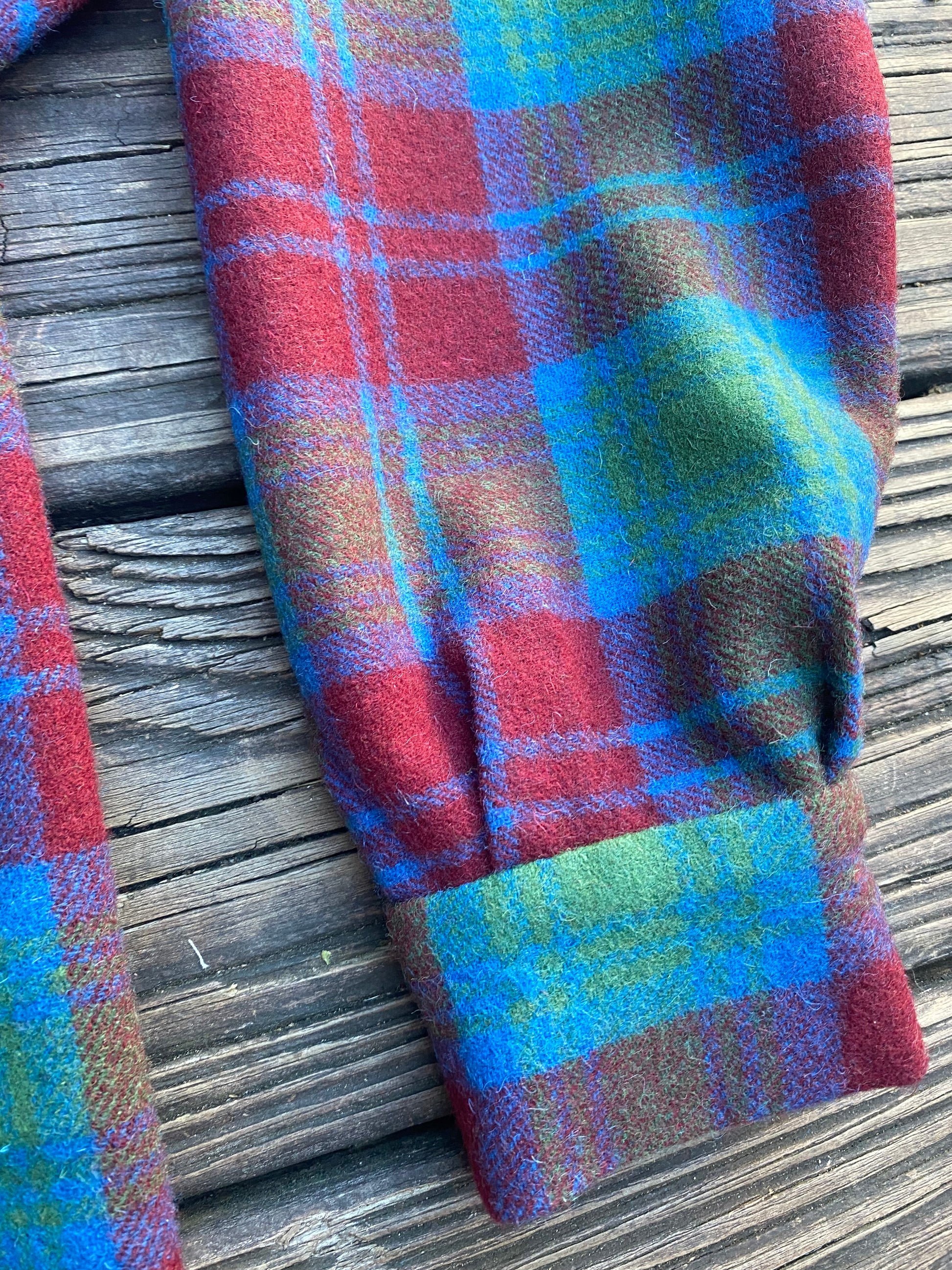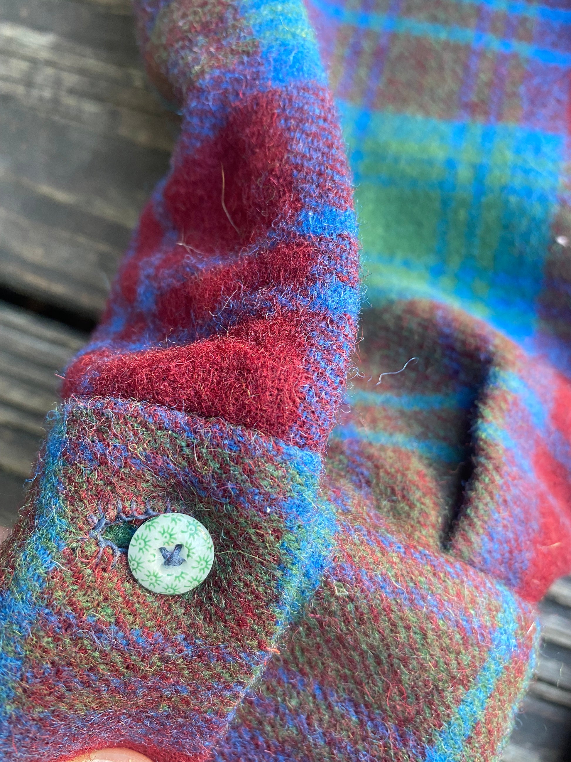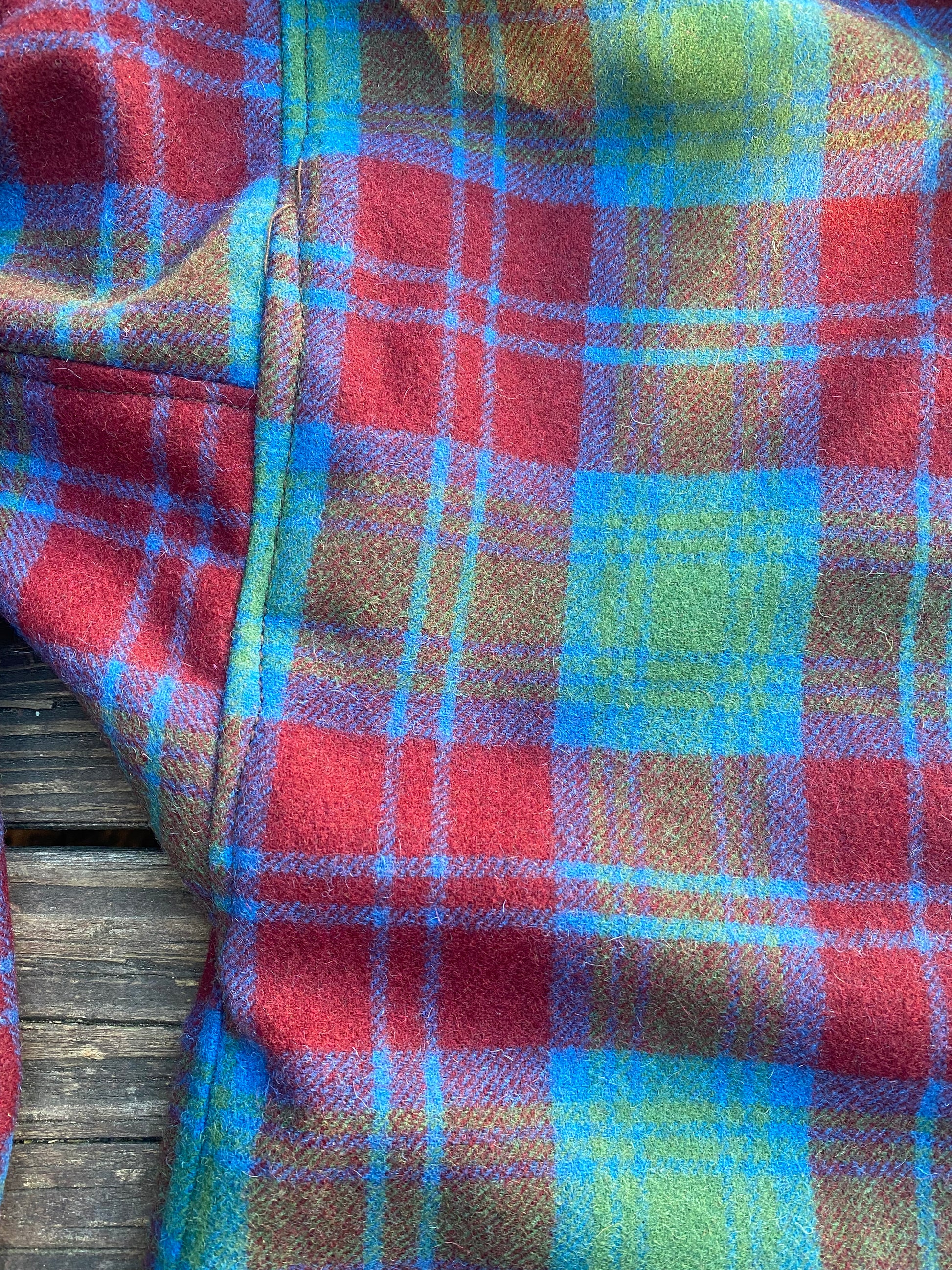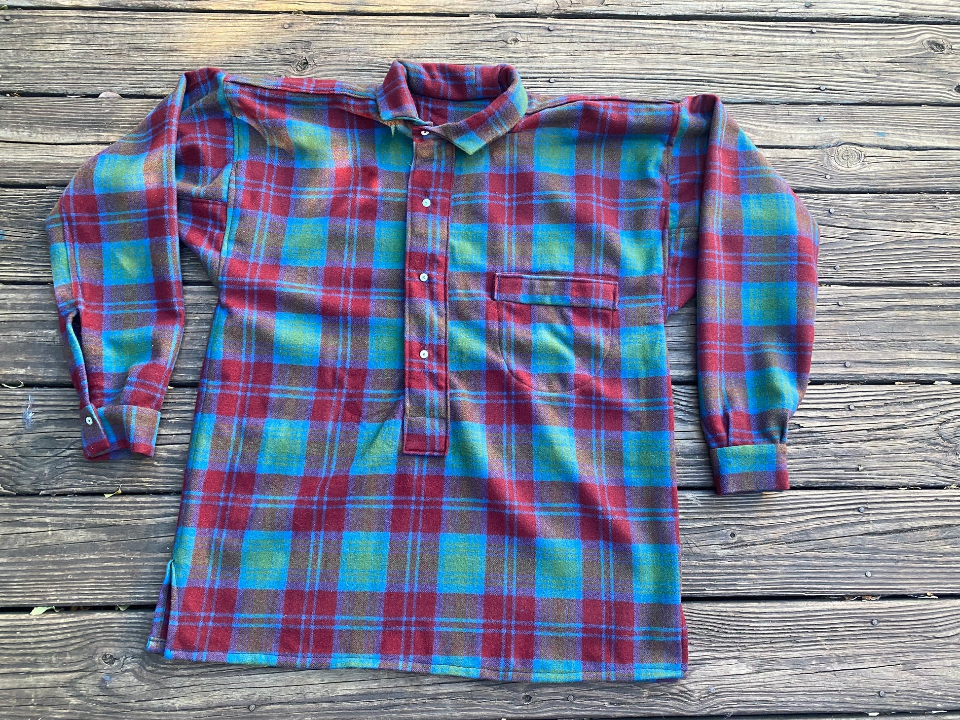 The shirts are made from plaid wool flannels, exact cloth my vary.