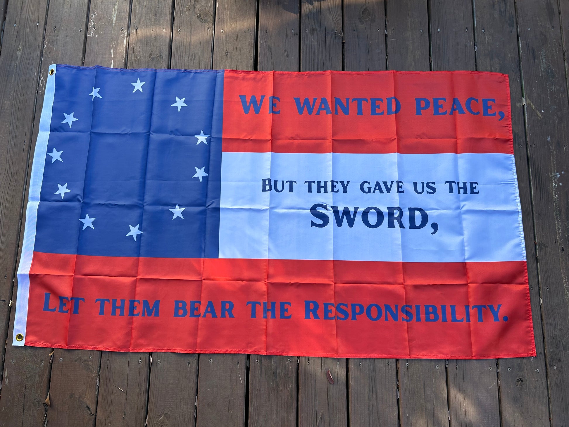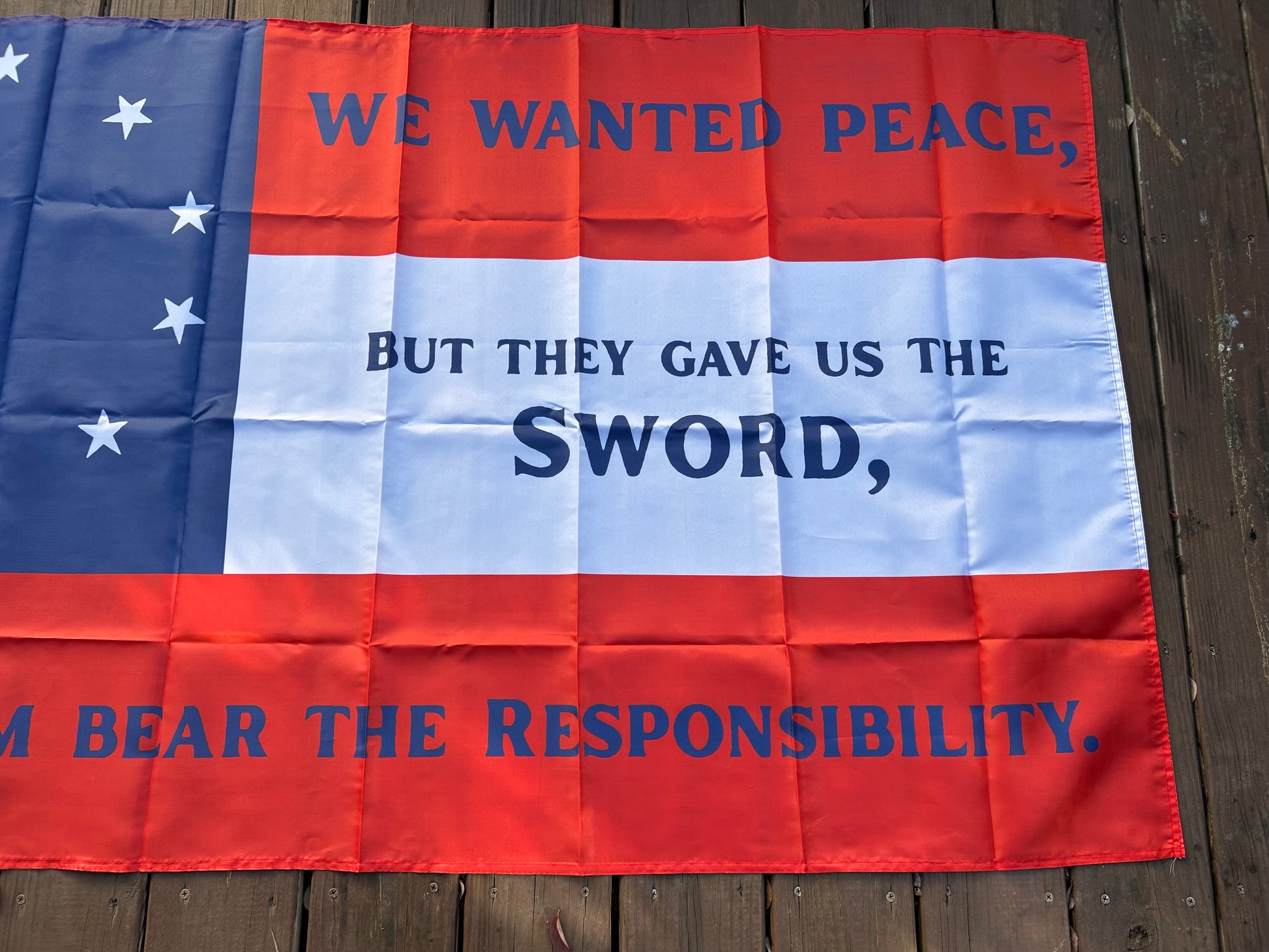 These are modern all-weather nylon flags for your house or garden based on a surviving patriotic envelope art design.